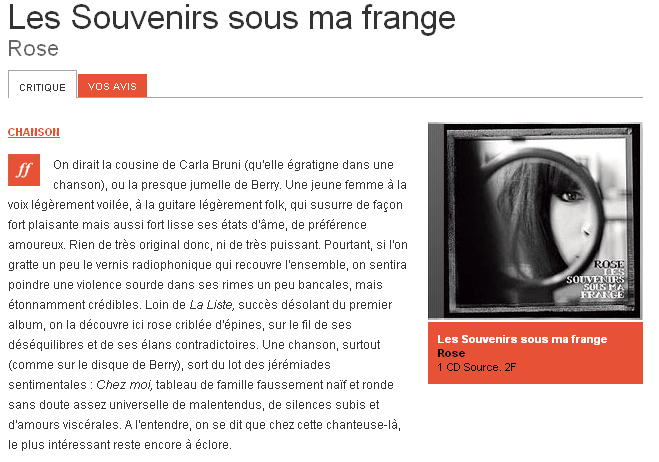 Web Critique de l’album (Telerama) 6 novembre 2009 0 FacebookTwitterPinterestWhatsApp » Lire l’article original » On en parle sur le forum » Retour à la page WEB